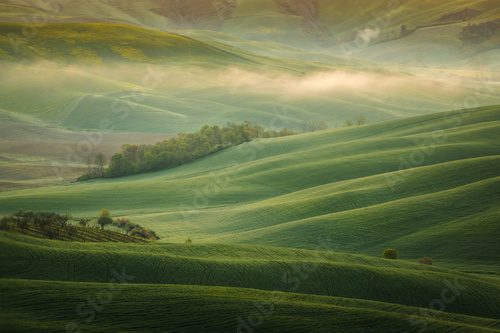 Papiers peints: Fantastic sunny spring field in Italy, tuscany landscape morning foggy famous Cypress trees
