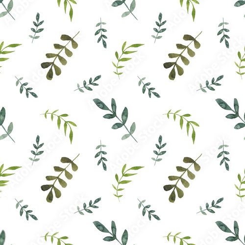 Tableaux: Watercolor leaves seamless pattern. Watercolor fabric. Repeat leaves. Use for design invitations, birthdays, weddings